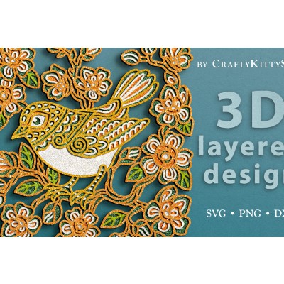 Κριτικάρετε το(τα): Intra απο ξύλο plywood Χρώμα wenge 3mm-4mm πάχος - Floral Bird 3D Layered Cut Δίασταση 30x20 cm INTRAFABR-61050344