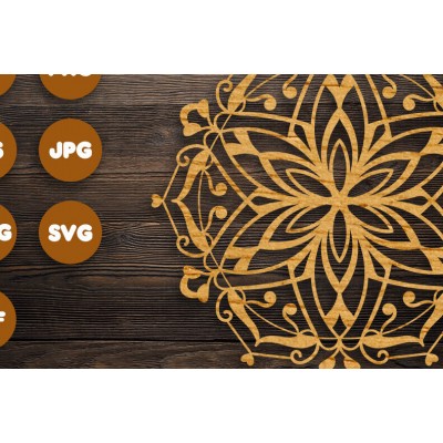 Intra απο ξύλο plywood Χρώμα wenge 3mm-4mm πάχος - Floral Mandala Αρχεία για Cricut Δίασταση 30x30 cm INTRAFABR-93948147