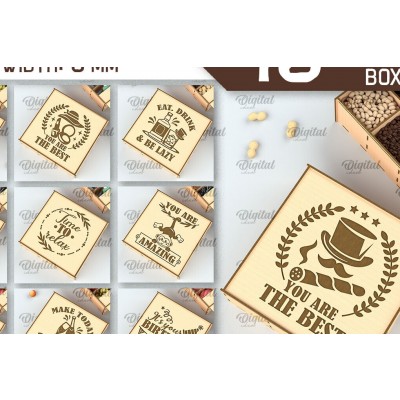 Διακοσμητικά κουτιά αποθήκευσης LaserCut Bundle Πρόκειται για ψηφιακό σχεδίου, ιδανικό για κοπή με ή plotter. Κατασκευασμένο απο Ξύλο από plywood [3mm ή 4mm], κομμένο με ακρίβεια στην βιοτεχνία Intrahome . Το φυσικό ξύλο προσφέρει μια κομψή, αυθεντική υφή και μπορεί εύκολα να βαφτεί ή να διακοσμηθεί σύμφωνα με το προσωπικό σας γούστο. Ελληνική παραγωγή – Κατασκευάζεται στην Ελλάδα με προσοχή στη λεπτομέρεια και υψηλές προδιαγραφές ποιότητας. ✔️ Υλικό: Plywood υψηλής ποιότητας ✔️ Διατίθεται σε πάχος 3mm ή 4mm ✔️ Ελαφρύ, ανθεκτικό και εύκολο στη χρήση ✔️ Ιδανικό για βάψιμο, χάραξη, κόλληση και χειροτεχνίες ✔️ Κατάλληλο για μπομπονιέρες, διακόσμηση, δώρα και DIY projects ✅ Εγγύηση 2 ετών – Σε περίπτωση σπασίματος, η αντικατάσταση γίνεται άμεσα, χάρη στην τοπική ελληνική παραγωγή μας. Ιδανικό για δημιουργικούς ανθρώπους που αγαπούν το DIY. Μπορεί να γίνει ξεχωριστό δώρο με προσωπικό χαρακτήρα. Φέρνει “χειροποίητη” αισθητική στη διακόσμηση. -files- Ελληνική χειροποίητη παραγωγ