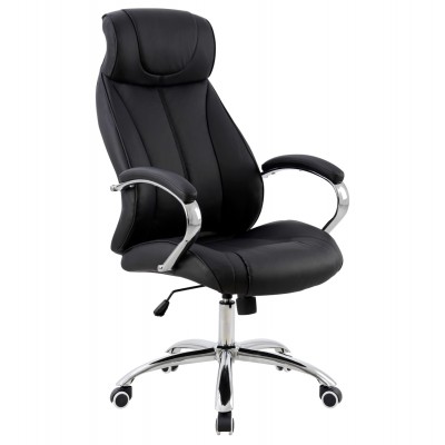 Καρέκλα γραφείου διευθυντική με μπράτσα και ανάκλιση από υψηλής ποιότητας PU σε μαύρο χρώμα και μοναδικό design.