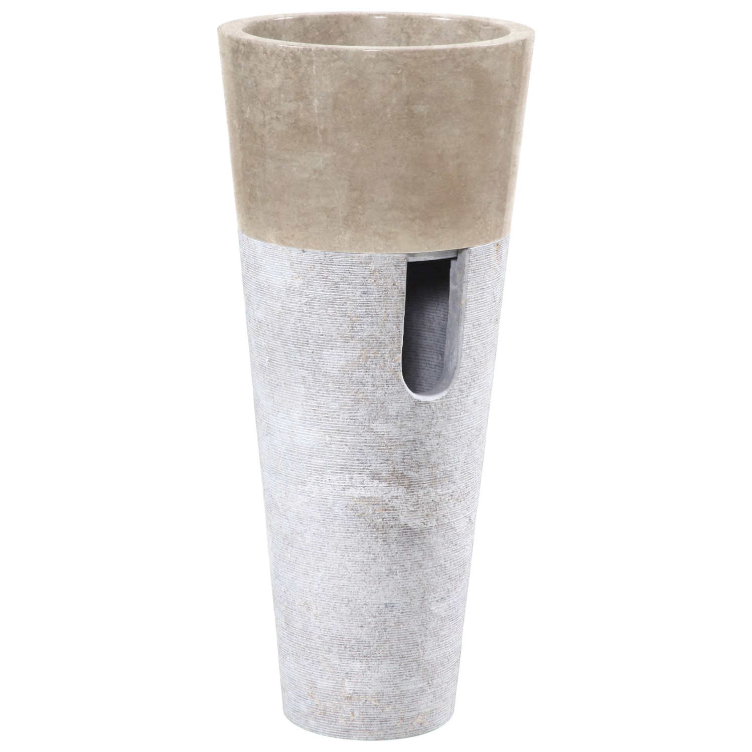 Ο νιπτήρας HM7808.02 είναι ένα μοντέρνο κομμάτι στον εξοπλισμό του μπάνιου. Πρόκειται για ένα κομμάτι μαρμάρου λαξευμένο σε κωνικό σχήμα και ειδικά μορφοποιημένο για να αποτελέσει τον νεροχύτη/νιπτήρα του μπάνιου. Ακολουθεί την τάση στην διακόσμηση που προστάζει φυσικά και βιώσιμα υλικά σε κάθε χώρο του σπιτιού αλλά και σε κάθε επαγγελματικό χώρο, όπως ξενοδοχεία, Airbnb, χώρους εστίασης κτλ. Με ΛΕΥΚΗ και ΚΡΕΜ διχρωμία, θα ταιριάξει αισθητικά με τα περισσότερα διακοσμητικά μοτίβα και θα τραβήξει δικαιολογημένα όλα τα βλέμματα.
