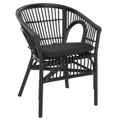 Η πολυθρόνα DAMPAR είναι κυρίως για εξωτερικούς χώρους, και ουσιαστικά δεν έχει ξεχωριστά μπράτσα αλλά ο σχεδιασμός της αγκαλιάζει το σώμα. Ο σκελετός της όπως και το κάθισμα, είναι από Rattan, ενώ τo μαξιλάρι στο κάθισμα είναι αναπαυτικό και δένεται με κορδόνια. Ολόκληρη η πολυθρόνα είναι σε ΜΑΥΡΟ χρώμα.