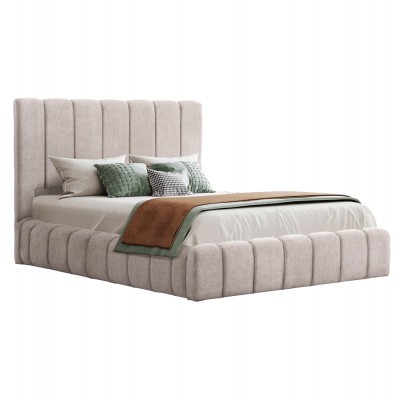 Το REMO είναι ένα κρεβάτι που θα αγαπήσετε με την πρώτη ματιά! Το κεφαλάρι είναι ψηλό με τεχνοτροπία καπιτονέ με κάθετες ραφές από «ζεστό» και εντυπωσιακό ύφασμα μπουκλέ σε ΜΠΕΖ χρώμα. Τα πλαϊνά του κρεβατιού αλλά και το ποδαρικό είναι ίδιας αισθητικής με το κεφαλάρι και «αγκαλιάζουν» το στρώμα! Όμως, το κύριο χαρακτηριστικό αυτού του κρεβατιού είναι ότι δεν ακολουθεί την κλασική κατασκευή με τις τάβλες του σομιέ για την στήριξη του στρώματος, αλλά αντίθετα αποτελείται από μια συνεχόμενη επιφάνεια (2 μοριοσανίδες), πάνω στις οποίες τοποθετείται το στρώμα! Επιπλέον, η κάθε επιφάνεια από μοριοσανίδα ανασηκώνεται με μεταλλικό μηχανισμό ασφαλείας με 4 αμορτισέρ και διαφανείς πλαστικές λαβές προσφέροντας έναν μεγάλο αποθηκευτικό χώρο. Σε διπλή διάσταση στρώματος 160x200 εκ. θα χωρέσει κάθε σας όνειρο!