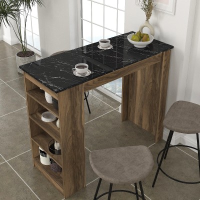 Κριτικάρετε το(τα): Τραπέζι μπαρ Monaco Megapap χρώμα καρυδί - μαύρο εφέ μαρμάρου 120x51,6x101,8εκ.