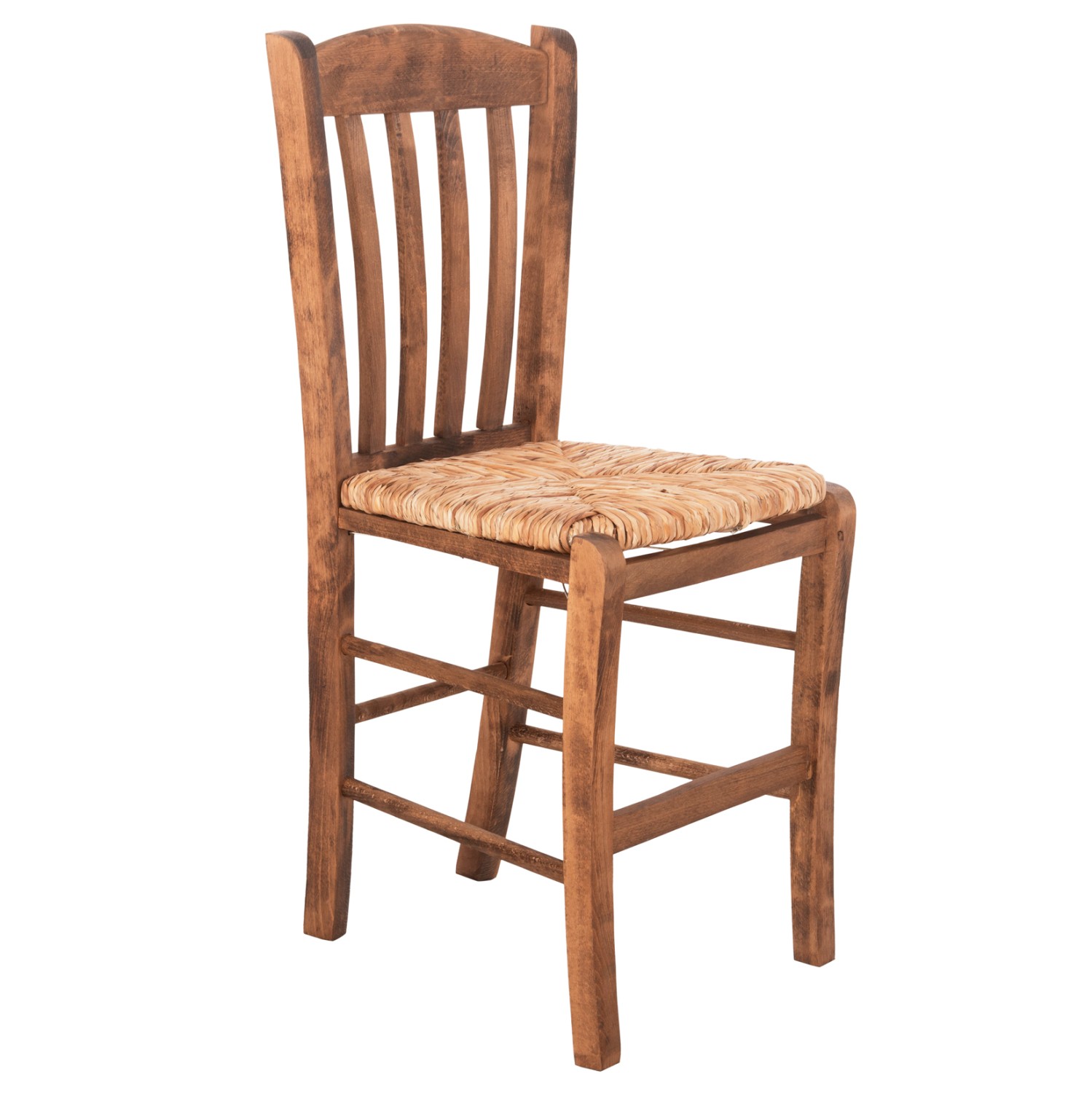 Η καρέκλα καφενείου MONTE, για επαγγελματική χρήση, είναι η παραδοσιακή καρέκλα από ξύλο εμποτισμένης οξιάς σε ΚΑΡΥΔΙ χρώμα. Η πλάτη έχει σχέδιο με κάθετα πηχάκια και αισθητικά είναι κατάλληλη για ταβέρνα, καφενείο, αλλά και γενικότερα για χώρους διακοσμημένους με το κλασικό Ελληνικό παραδοσιακό ύφος. Ο σκελετός είναι δεμένος με σύρμα για μεγαλύτερη αντοχή και ανθεκτικότητα στο πέρασμα του χρόνου, ενώ το κάθισμα είναι ψάθινο από ίνες seagrass.