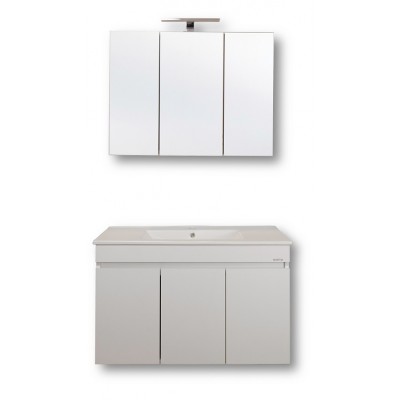 ΣΕΤ ΠΑΓΚΟΥ OMEGA TOP 90cm χρ. WHITE/GREY  S3BOMT090GLG Ο  Πάγκος Omega στην απόχρωση WHITE/GREY   αποτελεί ένα στυλάτο και μοντέρνο έπιπλο μπάνιου με εργονομικό σχεδιασμό αλλά και λειτουργικότητα. Αποτελείται από: Πάγκος κρεμαστός OMEGA 90 με τέλεια εφαρμογή σε όλες τις επιφάνειες με ή χωρίς πλακίδια. Περιλαμβάνει μεγάλο ερμάριο για την εξοικονόμηση επιπλέον αποθηκευτικού χώρου στο μπάνιο. Sintered Stone Top  για κορυφαία ποιότητα και υψηλή αντοχή και αισθητική. Διατίθεται ατρύπητο για ευεληξια στην τοποθέτηση Νιπτήρα επικαθούμενο πορσελάνης Χαρακτηριστικά: Υλικό κατασκευής: Μελαμίνη 16mm πάχος Πρακτικοί αποθηκευτικοί χώροι Με ντουλάπι και εσωτερικό ράφι Μηχανισμοί για απαλό και αθόρυβο κλείσιμο Εύκολη τοποθέτηση Ετοιμοπαράδοτα προϊόντα Δεν περιλαμβάνει το φωτιστικό, τη μπαταρία, τη στήλη και τα διακοσμητικά. Διατίθεται έτοιμο συναρμολογημένο.