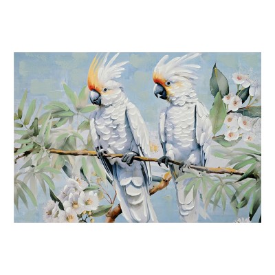 Ο πίνακας σε καμβά Parote Ι αποτυπώνει με μαεστρία ένα ειδυλλιακό σκηνικό καθώς οι παπαγάλοι είναι σύμβολα ομορφιάς και εξωτικής γοητείας. Η απαλότητα των χρωμάτων, από το λευκό των πτηνών έως το ροζ των λουλουδιών και το πράσινο των φύλλων, συνδυάζονται αρμονικά προσφέροντας μία αίσθηση ρομαντισμού και γαλήνης