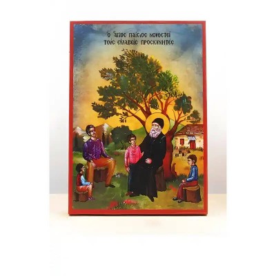 Εικόνα Ορθοδοξίας με περίγραμμα χρυσό σε ξύλο Φλαμουρίας με βάση Ο Άγιος Παΐσιος νουθετεί τους προσκυνητές, Ξύλινη Χειροποίητη Εικόνα Ελληνικής Premium Βυζαντινού Στυλ τοίχου Κρεμασμένη σε ξύλινη πλάκα Θρησκευτικό θέμα Χειροποίητη Ελληνορθόδοξη εικόνα τ