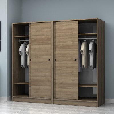 Ντουλάπα ρούχων Regio Megapap τετράφυλλη συρόμενη χρώμα καρυδί 200x60x181εκ. Η Regio είναι μια μοντέρνα ντουλάπα με συρόμενες πόρτες, σχεδιασμένη για να προσφέρει μέγιστη εργονομία σε περιορισμένους χώρους. Διαθέτει ευρύχωρους εσωτερικούς χώρους, ιδανικούς για ρούχα, αξεσουάρ και όλα όσα χρειάζεστε τακτοποιημένα και οργανωμένα.