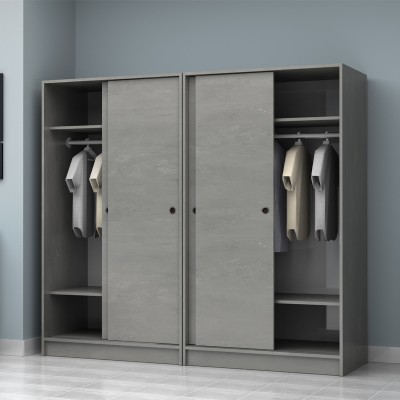 Ντουλάπα ρούχων Regio Megapap τετράφυλλη συρόμενη χρώμα γκρι σκυροδέματος 200x60x181εκ. Η Regio είναι μια μοντέρνα ντουλάπα με συρόμενες πόρτες, σχεδιασμένη για να προσφέρει μέγιστη εργονομία σε περιορισμένους χώρους. Διαθέτει ευρύχωρους εσωτερικούς χώρους, ιδανικούς για ρούχα, αξεσουάρ και όλα όσα χρειάζεστε τακτοποιημένα και οργανωμένα.