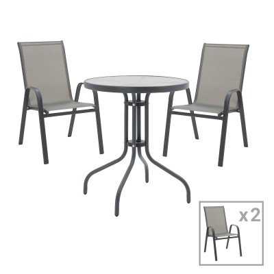 Tραπεζαρία Calan-Watson pakoworld σετ 3τεμ μέταλλο γκρι και γυαλί tempered Φ60x70εκ