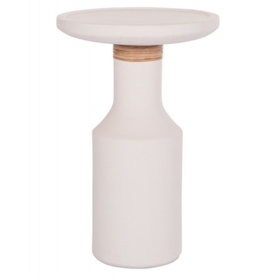 Το βοηθητικό τραπέζι σαλονιού TRED(Τ) είναι ψηλό και στρογγυλό με minimal διακόσμηση/επένδυση στον μακρύ «λαιμό» από φυσικό Rattan. Είναι κατασκευασμένο εξολοκλήρου από Fiber Cement σε ΛΕΥΚΟ χρώμα και αποτελεί ιδανικό συμπλήρωμα τόσο για το σπίτι, όσο και για επαγγελματικούς χώρους, όπως ξενοδοχεία, AirBnB, κτλ.