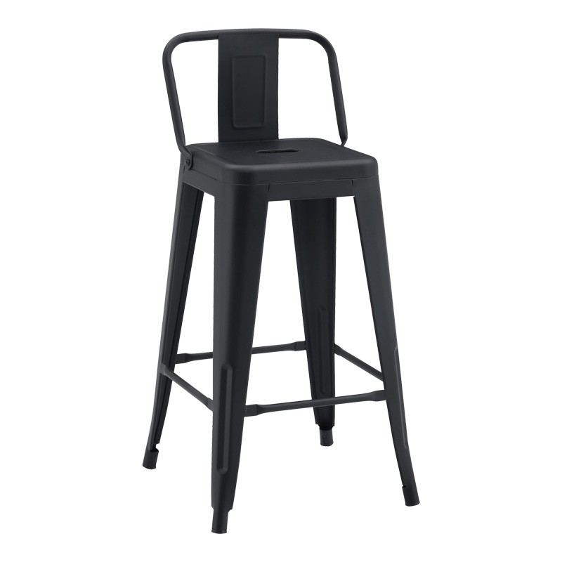 Όνομα Προϊόντος Σκαμπό μπαρ μεσαίου ύψους με πλάτη Utopia pakoworld σε μαύρο ματ μέταλλο 42x42x86εκ